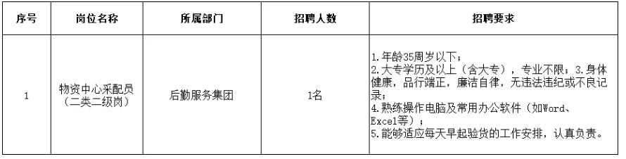 黄山学院招聘物资中心采配员公告