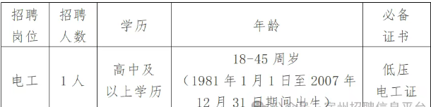 报名材料:递交《应聘人员报名表》(可在报名地点现场填写或自行下载附件填写),并出示本人身份证、毕业证、电工证原件(有效期内)及全部复印件,同时提供一寸白底近期免冠照片3张,资格审查通过后,考生需缴纳报名费50元。