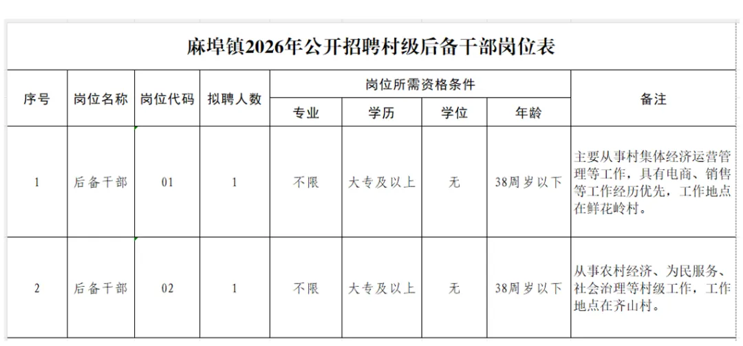 公开招聘2名村级后备干部。