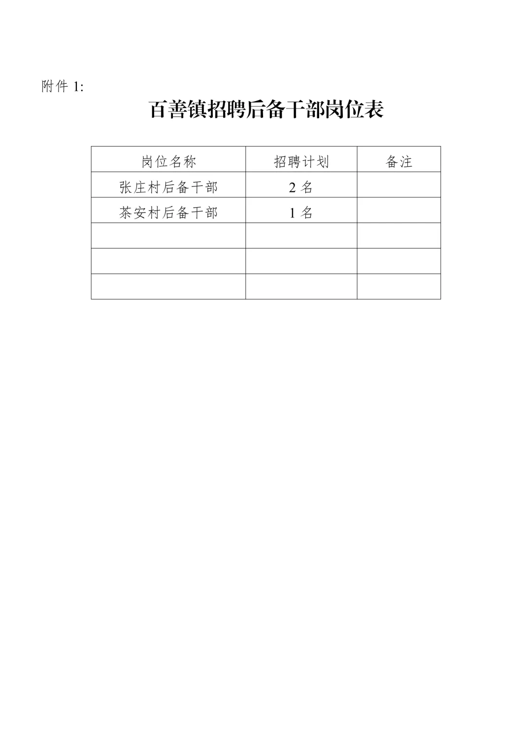 根据全镇村“两委”班子现状,公开招考村级后备干部3名,在全镇范围内调剂使用。(具体招录名额见附件1)